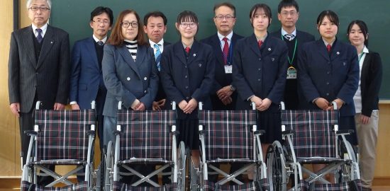 令和7年12月10日(水)、本校PTA及び3年生は、藤ノ花フェスタでの「PTAチャリティーバザー・模擬店」並びに「3年生模擬店」の収益金より、社会福祉法人のさわらび会と作楽荘へ、車いす各2台を寄贈しました。また同日、PTA副会長・校長・生徒…