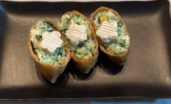 食物科・2年・吉田方中 作品名:チュモッパ風菜めしお稲荷さん(写真)
