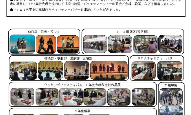 令和7年11月12日(水)に、藤ノ花フェスタが開催され ました。テーマは『Popcorn ~はじける青春~』。本年度は、11日(火)の午後に「前日祭」という名称で生徒ダンスなどのパフォーマンスを楽しみました。12日(水)の当日には、文化…